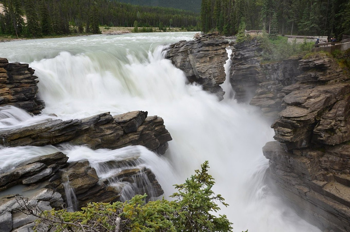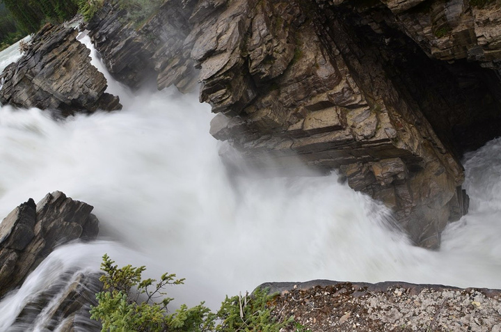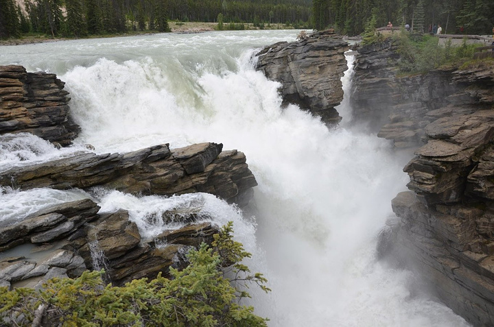 阿塔巴斯卡瀑布的落差,在落基山区的瀑布中并不算特别大,但是让人们记住阿塔巴斯卡瀑布的真正原因是,在这里你可以亲眼目睹到大自然的强大力量。一万多年前,由于冰河运动把岩石切割成很多巨大的石块,而引起水流的落差,并形成了今天的瀑布。冰川消退后,阿塔巴斯卡河的河水携带着沙石以每年数毫米的速度继续切割着被冰河撕裂开后的岩石,形成我们现在看到的峡谷。 这条瀑布的水量非常大,站在观景台前,只见奔腾而来的河水猛烈地拍打着河道中的巨石,激流咆哮之声时刻冲击着耳膜。