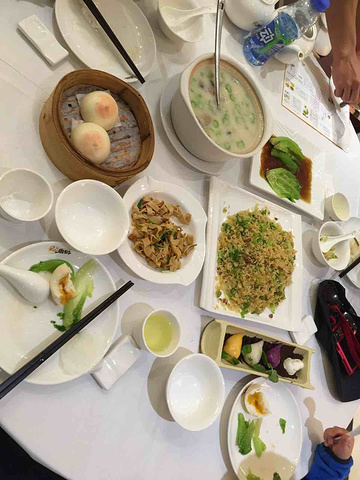 白灼芥蓝和生菜美味鲜嫩, 儿子很喜欢,吃了很多。就是早上要10点才开张,没有早茶喝啦很喜欢这家店,装潢富丽堂皇,银色的大马闪亮登场。感觉味道很不错,这个奶黄包的造型实在…猪杂粥是自选材料干净脆爽。白灼芥蓝和生菜美味鲜嫩, 儿子很喜欢,吃了很多。就是早上要10点才开张,没有早茶喝啦。