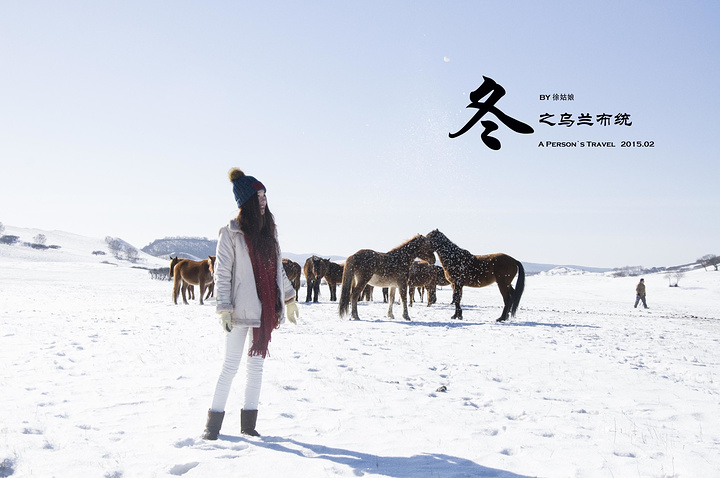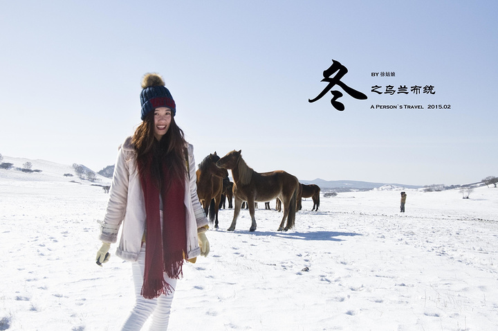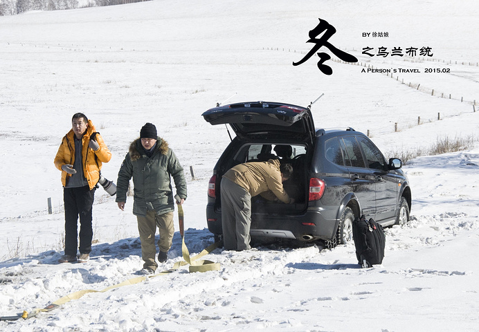 在马群身边玩了会儿,就回车继续前行,后来才发现在这里徐姑娘广角镜头的盖子掉了...... 11点:离开马群,我们2辆车打算继续深入北沟,但是由于冬季北沟基本没人进入,不知道路况,我们遭遇了我们此次旅程的第一次雪陷,也就是我们所坐的的胖哥的车陷在雪里了,胖哥连忙通知后面夏哥的车不要前行。徐姑娘下车了。
