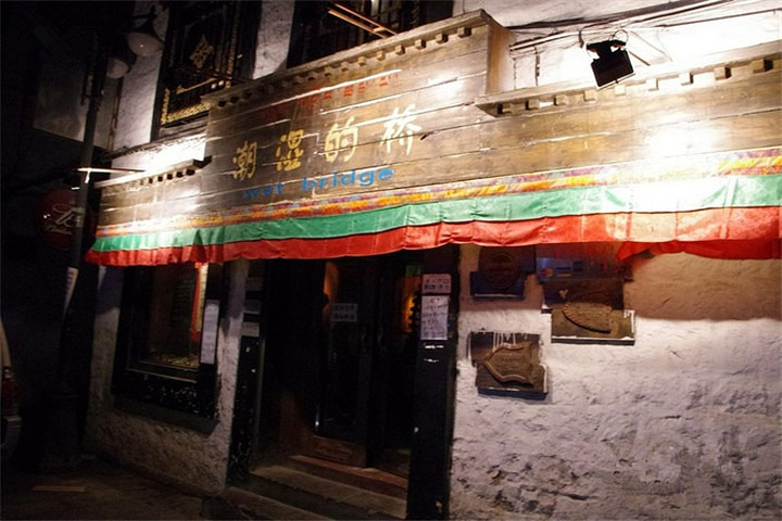 “潮湿的桥”隐藏在云集了众多旅行者的北京中路的一个小巷子里,店铺并不大,却极为精致,用木条巧妙搭建起来的桥状的装饰隔离物,颜色艳丽而妖娆的条形粗麻桌布,橘红色的点点烛光,实在是一个颇有情调的好去处。