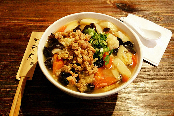 牛皮东也是一家口碑很不错的大西北面馆,现代的简约风听着爵士乐吃着臊子面就着一小碟精致的榨菜丝儿,特别是在冬天,吃下去的虽然是食物,但身板涌上来的,却是浓浓的暖气儿。这家的小吃可以和北27那家店媲美,装修从门面到内部很小资的感觉,西北风格的小餐馆还能这么小优雅,还是挺让人感动的。店里还有主打饮品——杏皮水,酸酸甜甜的也是蛮受欢迎的哟。