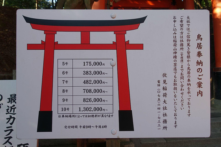 鸟居这个东西毕竟是实木的,还是蛮贵的,价目表一张,土豪们上……
