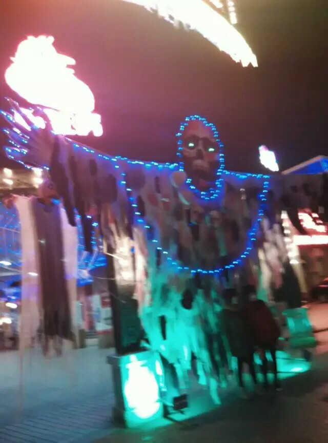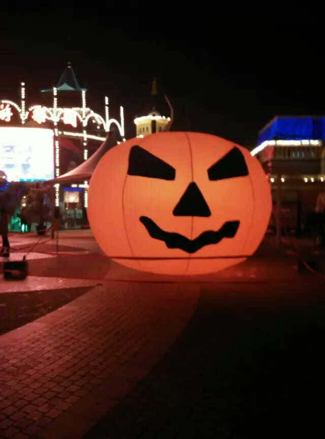 是万圣节时去玩的啦,就只有我一个人,感觉还不错哦!在游乐园中逛了一圈之后,游乐园中的音乐背景特别适合万圣节,到达哪个项目都有一种惊悚的感觉,总是以为前一秒在玩耍,后一秒身后会出现一个鬼啊,工作人员担心我是一个人,还特别贴心的提示我小心点呢。