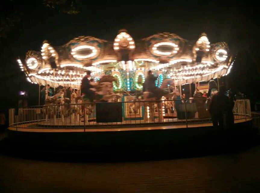 最先去的是摩天轮,因为一直有向往摩天轮的高空啊,由于我一人,音乐比较恐怖,然后又去玩的旋转木马,听说每个女生都有自己的公主梦,也算是做了一下梦吧,以前去游乐园都没有玩过旋转木马。温柔的项目完了,接下来就是刺激的了。