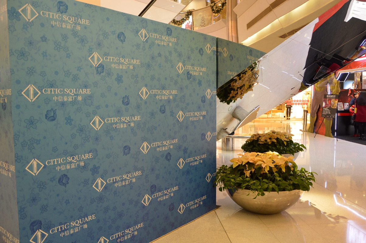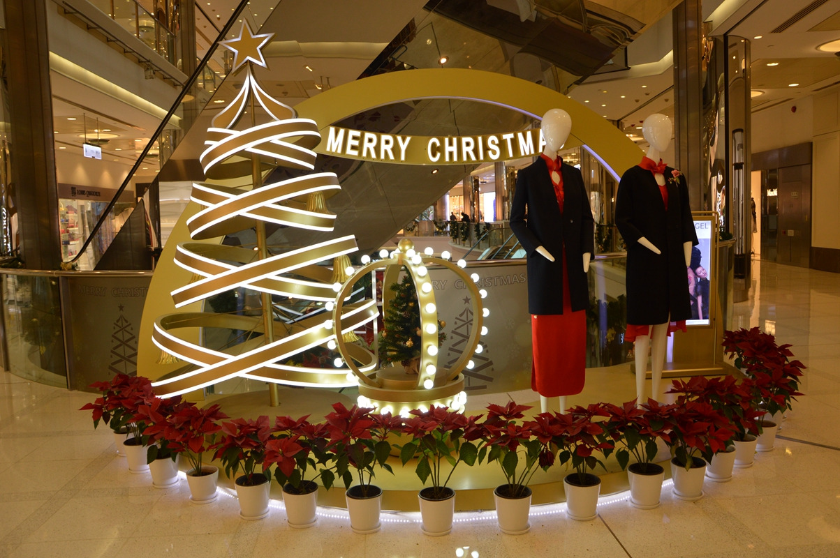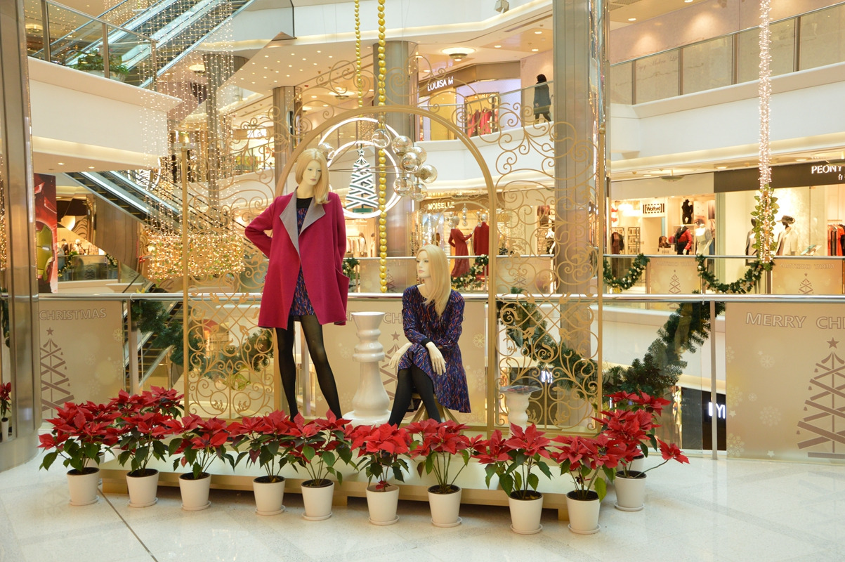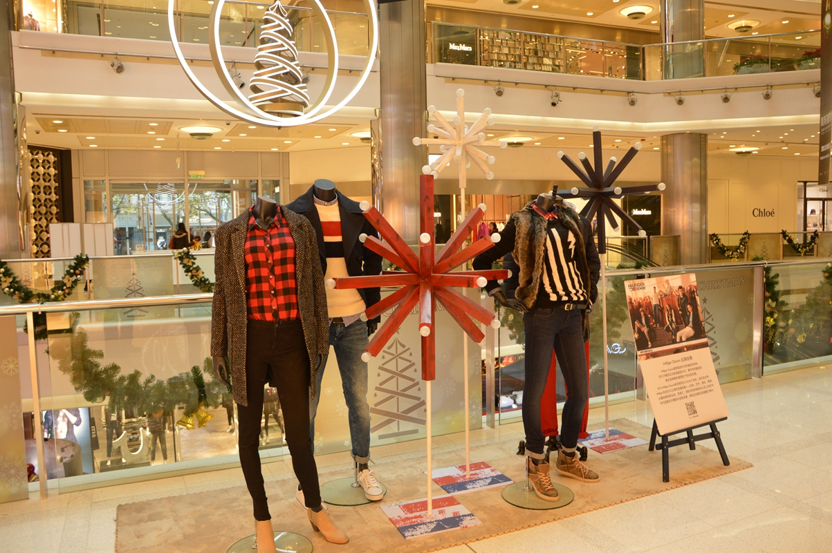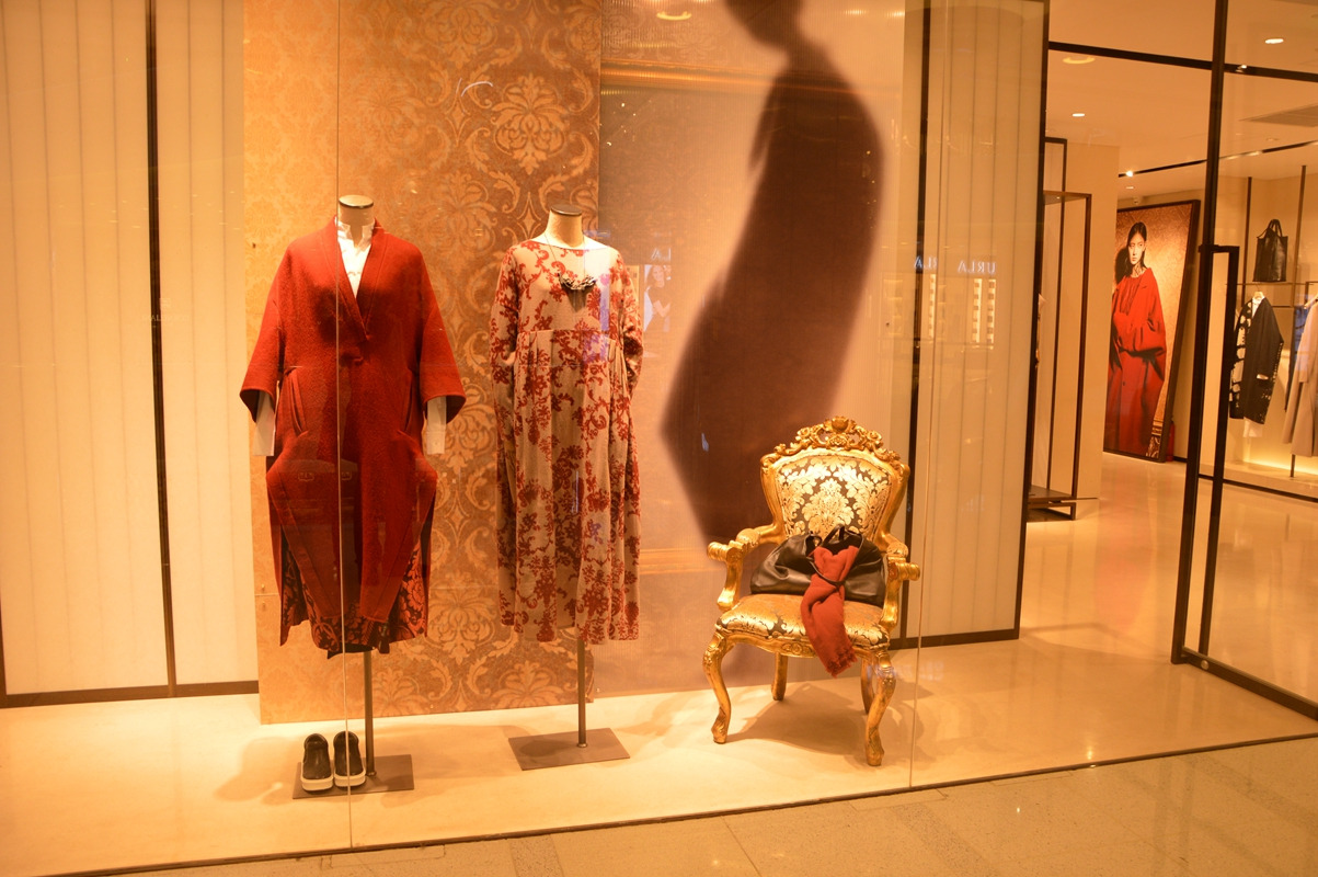 人行扶梯边上的品牌服饰摆设,很有过节的感觉,挺时尚的。