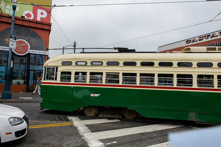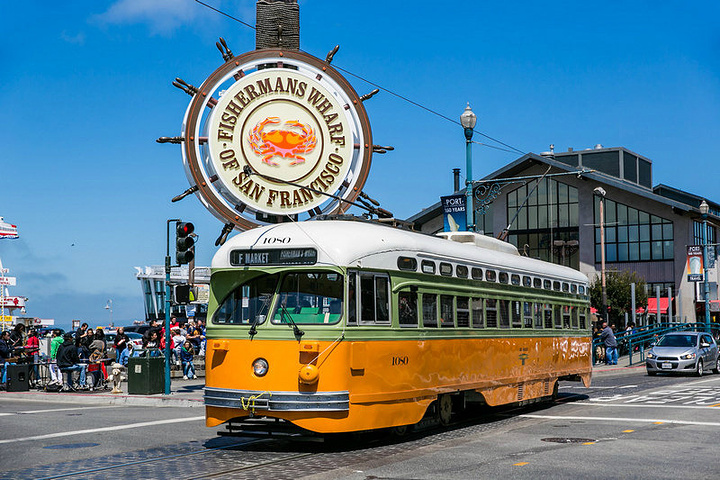 店家特别安排面包师傅现场烘焙制作,玻璃窗旁经常挤满围观的人群。旧金山有不少从全美收罗来的老式公共汽车