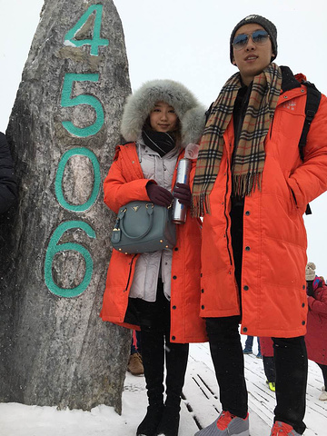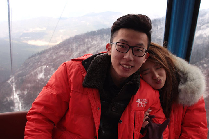 我们上山的那天天气不是特别好,山顶的云雾还是比较大的,加上寒冷的大雪天气,我们只在索道外面照...