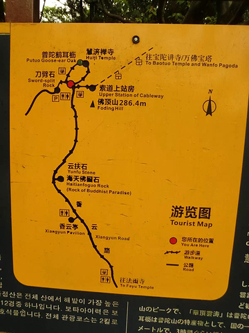 附上游览图一张,希望大家别像我们这样犯傻,要是买了70元的索道缆车,到头来,连寺庙都没有进去,就一直走到法雨寺,那就真的无语啦~