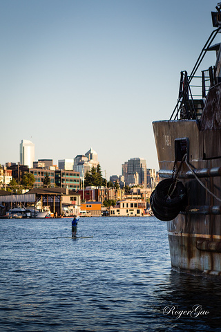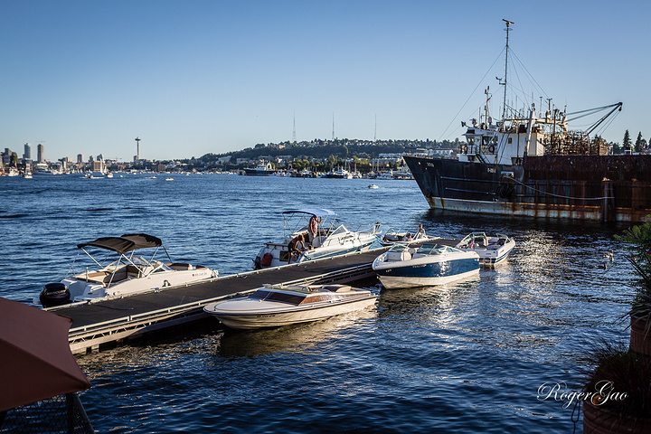 应该说这是一个不错的地方,因为窗户的外面紧靠着 Lake Union Seattle Skyline,湖面上帆影点点,餐厅内鱼香肉脆。