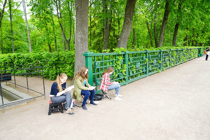 然后在下花园随便走走,这里除了喷泉,可以看的地方也不少。连艺术学校的小美女都来这里写生了。俄罗斯的年轻MM每个都是美人坯,身材也是模特级的。