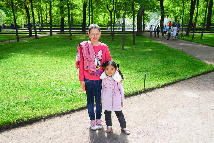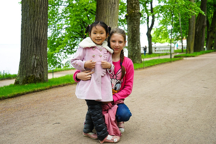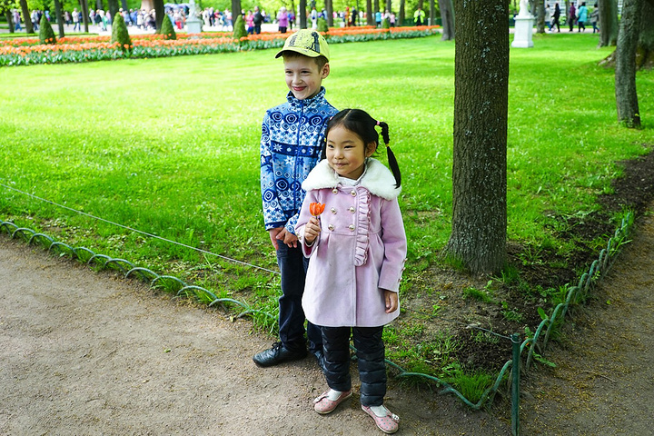 然后有一个很可爱的俄罗斯小女孩对小豆子很感兴趣,一直跟着我们,又有点害羞不敢和我们打招呼,我就让小豆子去和她合拍了一张。