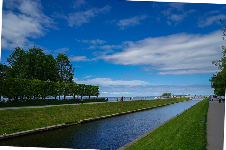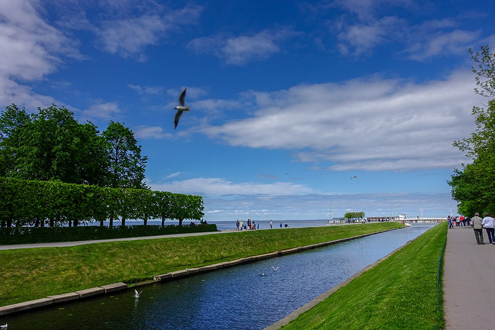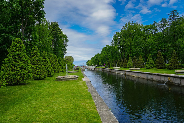 在花园的另一边别有洞天,竟然还这么一个超大的喷泉。这条运河直通波罗的海,景色相当的漂亮