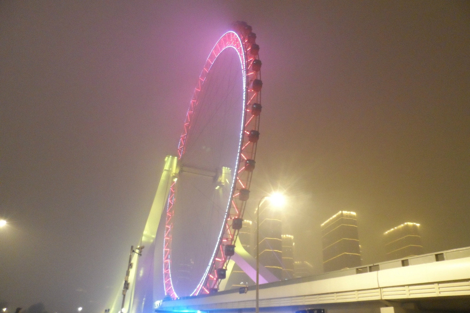 天津之眼,又称永乐桥摩天轮,是一座横跨海河,建在桥之上的摩天轮,是天津最新的地标建筑之一了,毗邻大悲院、三岔河口,附近公交站有金钢桥站、河北五马路站,多条公交到达,交通方便。门票每人60元,游览时间就是摩天轮旋转一周的时间了,要28分钟,天气好的时候,还是值回票价的,但是天津经常迷失在雾霾里,想好让美景尽收眼底,就要查好天气预报罗。最好是可以提前网上订票,会便宜些。