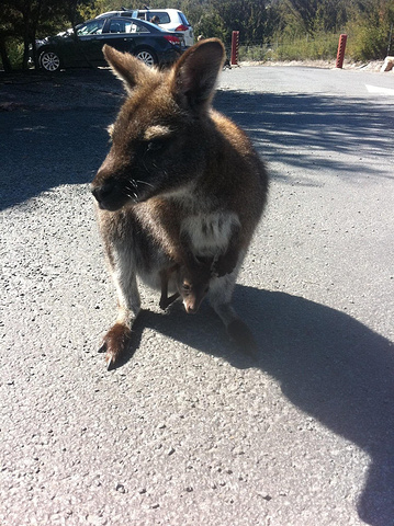 回到停车场看到两只袋鼠来讨吃的,其中一只的育儿袋里有这个小东西,太萌了