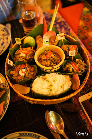 AMOK拼盘。AMOK是柬埔寨的国菜,吃起来就像是咖喱煮杂菜,吃起来香料味更重于咖喱味,根据主料的不同,有AMOK鸡、AMOK牛、AMOK虾……我直接点了个拼盘,什么都有了。