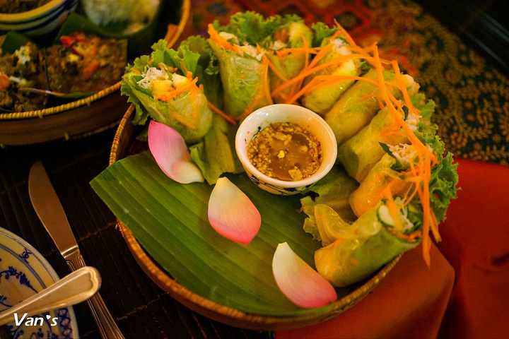 我大爱的春卷,薄薄的米皮里包着新鲜蔬菜和大虾,蘸上那个酸酸甜甜辣辣的调味汁,清爽又美味。此外我还点了炸春卷和香蕉花沙拉,都很不错。但两个人根本吃不完,太浪费了……惭愧。