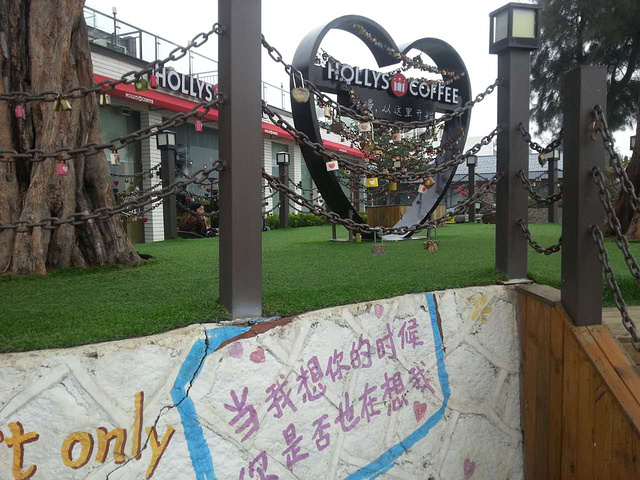 我们是从海边绕过来的,所以先看见的是后面的这个爱心锁~