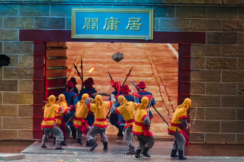 下午14:00的时候进入景区,正好赶上了《紫禁大典》演出。横店影视城内每个景区每天都有好多场次的演出,都非常精彩,不容错过。《紫禁大典》描述的是北京紫禁城的历史,从明成祖朱棣定都北京以来一直到中华人民共和国成立,紫禁城经过了风风雨雨,场面宏大壮观,情节跌宕起伏,很值得一看。