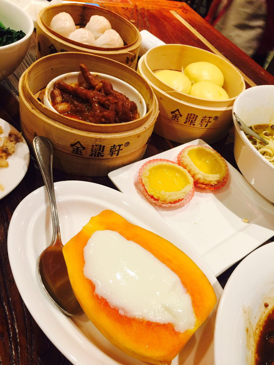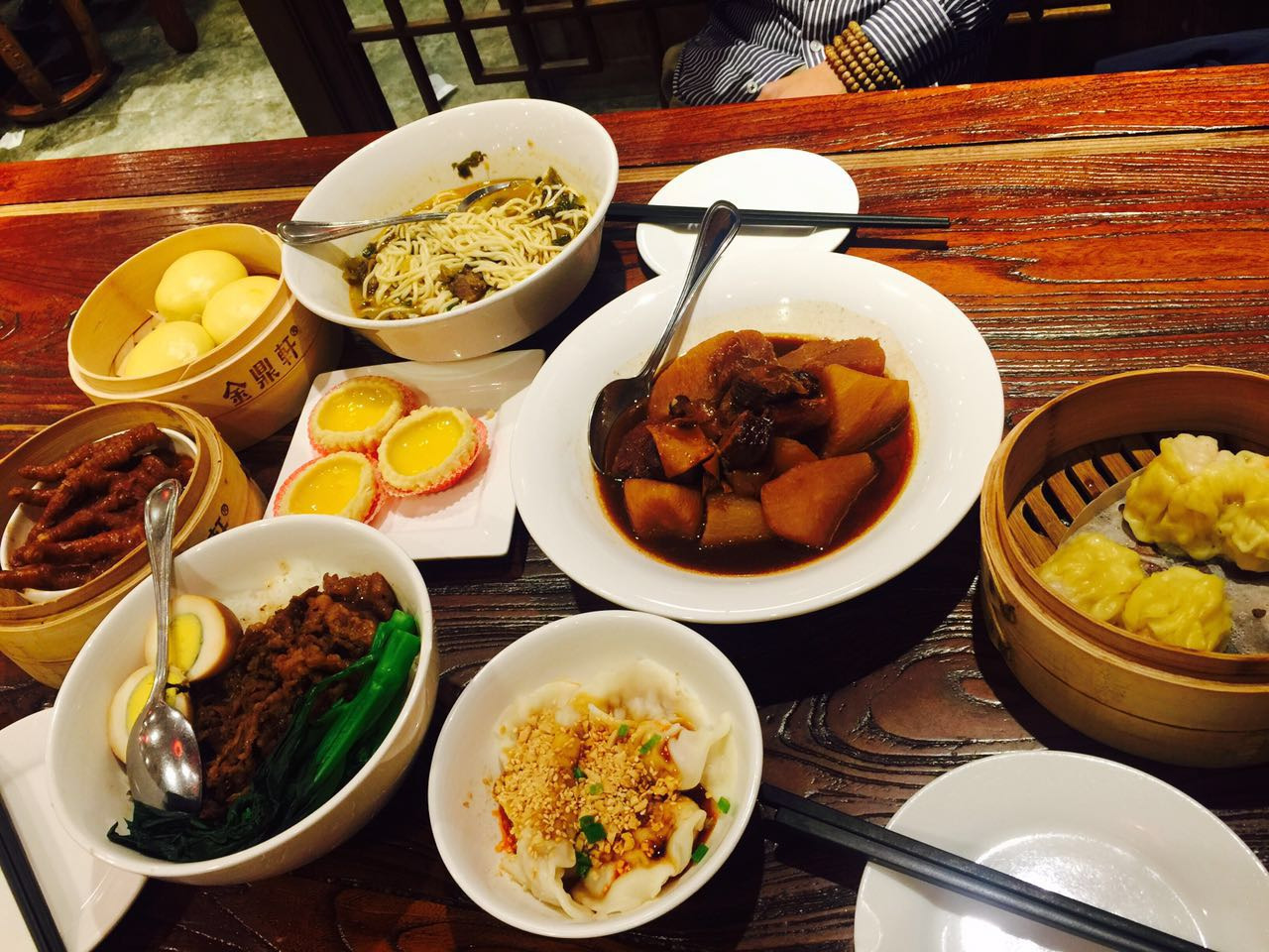 推荐菜品:榴莲酥、黑芝麻糊、虾饺(整颗虾都在里面)、豉汁凤爪、宜宾燃面、奶黄流沙包等等