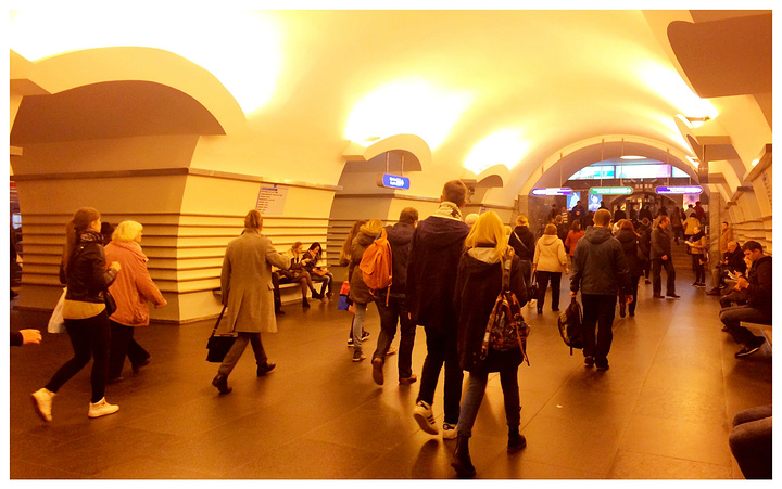 回到圣彼得堡,大巴停靠的是蓝线的莫斯科地铁站,从这里直接坐地铁前往涅瓦大街地铁站