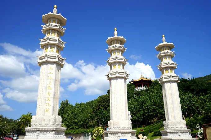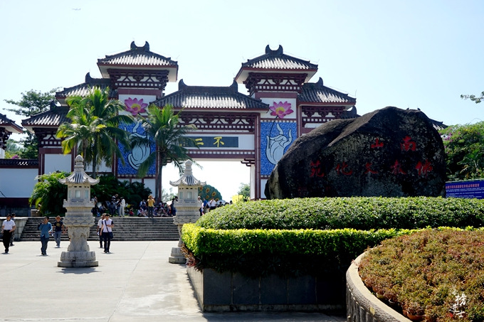 三亚南山寺是我国著名的佛教文化寺院,这里的位置非常好,左右两边有山丘环抱,南面就是大海,景区中种植了很多植物,这里的建筑设计仿造了盛唐时期的风格,整个景区面积非常大,是海南所有景区中面积最大的一个,如果仔细游览的话需要一天的时间。来这里参观可以步行或者乘坐电瓶车,电瓶车的路线是:电瓶车站→金玉观音→长寿谷→缘起楼素斋餐厅(吉祥如意园)→南山寺。很多游客来三亚都会来南山寺的观音圣像前看一看,这是三亚的标志性建筑之一,如果想抱佛脚的话,还需要再买票,进去后有义务讲解员讲解南海观音像的历史,并且有电梯可以坐到平台,在平台上可以看到祖国南海的美景,圣像距离三亚凤凰机场很近,经常有飞机从观音的头顶飞过。