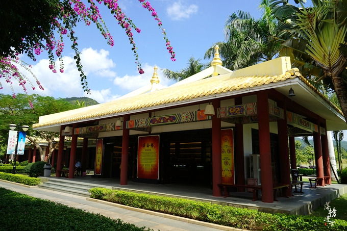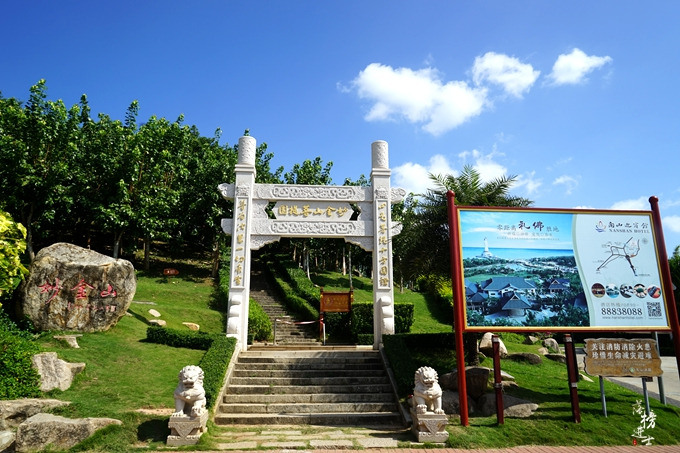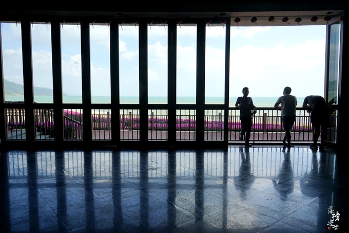 这里的位置非常好,左右两边有山丘环抱,南面就是大海,景区中种植了很多植物,这里的建筑设计仿造了...