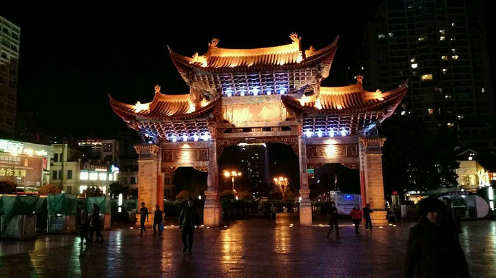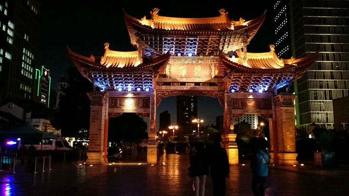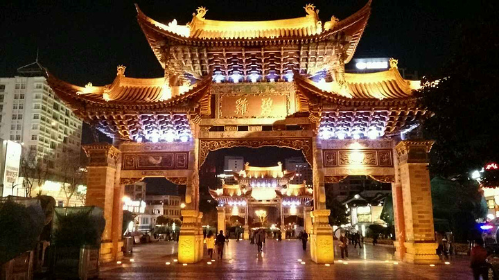 就是两块牌坊,一块叫金马坊,一块叫碧鸡坊,相距二三十米而立。两个牌坊之间和周围是一块小广场。因为地处市中心,所以算是昆明的一个地标。晚上灯光打上去,还是挺漂亮的。还在没有被广场舞大妈们占领,散散步还是不错的,个人觉得专程跑了看就没必要了。