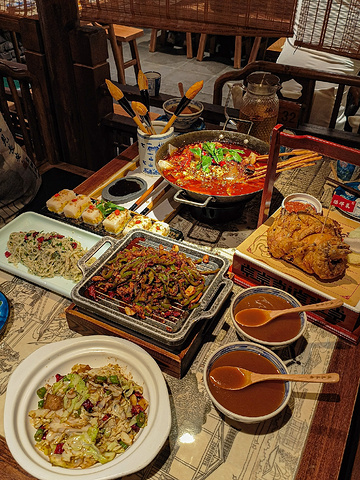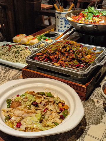 西安人从小吃到大的不止是肉加馍胡辣汤,还有外地人不知道的各类陕菜,遇见长安是陕菜馆子老标杆了,品质也是一直在线,大唐西市这家丝路风荷很久没吃怪想念的,是离我最近的一家店了,月底聚餐和伙计们来吃一哈 1️⃣葫芦鸡 | 陕菜经典!酥脆软嫩入味的童子鸡搭配辣子面,口味一级棒! 2️⃣鲜鱼上上签 | 一道集合麻辣鱼和红油串串的锅子,下饭又过瘾 3️⃣孜然炒肉 | 只有在西安才能吃到好吃的孜然炒肉!没人反驳吧! 4️⃣桂花凉糕 | 好久没吃,他家凉糕变得更大块了,清甜不腻 简直甜食爱好者的高光时刻 5️⃣毛笔酥 | 谁说本地人不吃这个,好看也好吃的小甜点,可以拿它蘸凉糕汁汁吃 6️⃣枣沫糊 |酸甜的枣沫糊开胃又好喝 7️⃣小茴香拌煎饼| 碳水脑袋不能缺少的一道菜 ▶️他家品质永远在线,不管隔多久来都是记忆中的好味道 📍大唐西市 西市城三楼