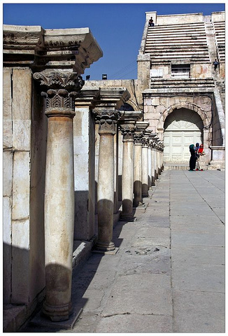 古罗马剧场坐落于安曼城堡山脚下的老城区,建于公元2世纪,整个建筑依山而卧,设计风格与约旦杰拉什的古罗马剧场极其相似,可容纳6000人。