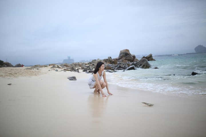 DAY3 昨夜下了一夜的雨。清晨半睡半醒间,依稀听见窗外淅淅沥沥的雨声伴着潮水声。我从未见过海边下雨,我也从未在面朝大海的床上醒来。真是个特别的早晨。天空熹微,我们便起身。我穿着松软的睡袍,倚在阳台的沙发上,看着那片海温柔地起伏着。小雨依旧在空中飘洒着,心中略有忐忑,不知今天太阳是否赏脸,给我们一日艳阳高照。尽管如此,那一刻,我觉得我是幸福的。是啊,有什么能比和爱人一起欣赏世间的美景更幸福呢真希望时间能在那一刻停止。常常幻想,星空下,和你两个人躺在沙滩上,我们周围空无一人,我们尽情地呼吸着天地间的温柔。那一刻的感觉是最接近我的幻想的。你总是在摆弄着相机,我知道你是希望用相片的形式让记忆永恒。其实我更希望,以后我老了,拍照不美了,我能依偎在你怀里看日出,我们好好地说说话。 洲际酒店的早餐非常丰盛,至少对我们这种第一次住五星级酒店的人来说是这样吧。回来之后,你还跟我说起,那个德国烤肠味道真好呢~我说你怎么当时也不喊我吃,用过早饭,我们在酒店小拍了些照片。本来可以躺在沙滩边的躺椅上看海拍照的,结果由于下了一夜雨,那些躺椅上的海绵都湿透了,所以我们只好周围走走。这几张照片我也非常喜欢,真有大片的感觉。我长得如此一般,但你镜头下的我却总是比我在镜子里看到的自己要美得多。我把这理解为,是因为有爱,所以你有一双发现美的眼睛。