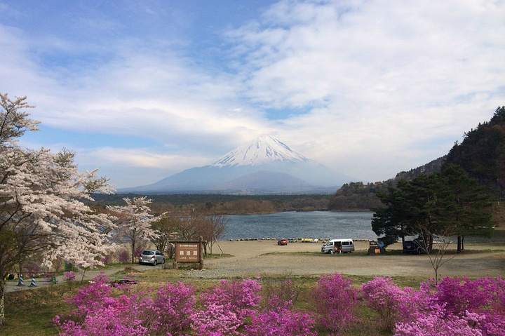 这才是此行的重点!从河口湖车站坐bus大概三刻钟的样子就能到达精进湖,同样是欣赏富士山的绝佳地,相比河口湖,这里人少,视野开阔,更为通透和精致。 没想到都4月底了还能看到成片的樱花,一下车就惊叫了好吗!