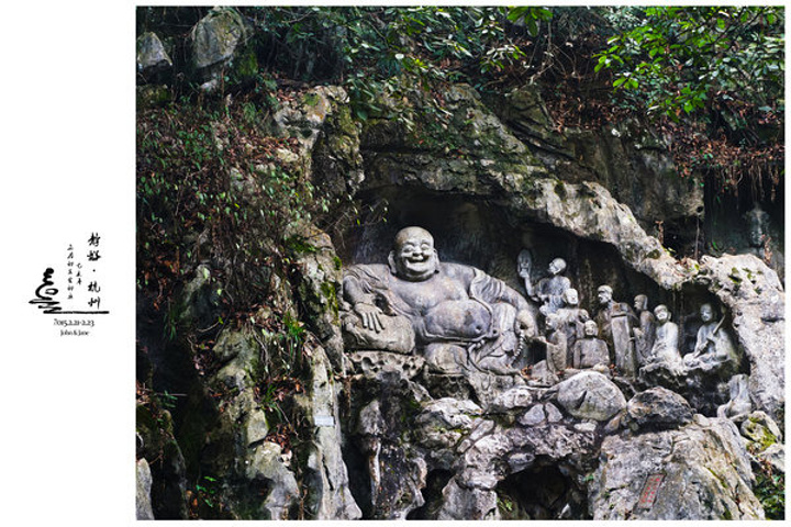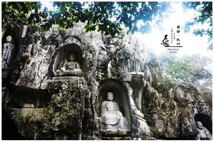 终于走到了灵隐寺。灵隐寺分两部分,门口买的是飞来峰门票,进到灵隐寺需要另外i买票。 飞来峰面朝灵隐寺的山坡上,遍布五代以来的佛教石窟造像,多达三百四十余尊,为我国江南少见的古代石窟艺术瑰宝。除了这奇石异峰,山里也是别有洞天,还有一线天这种天然奇观。探访于此,很有乐趣。只是洞内都是小石子路,遇到雨天路很滑,走起来要小心。