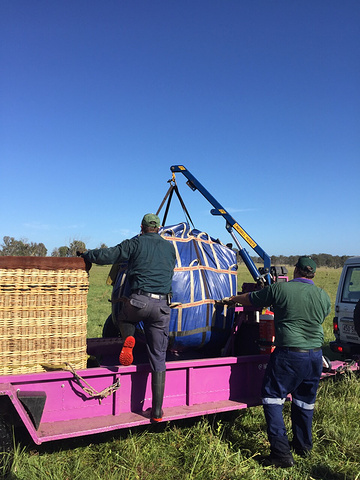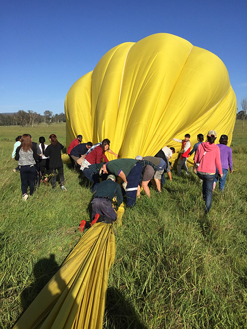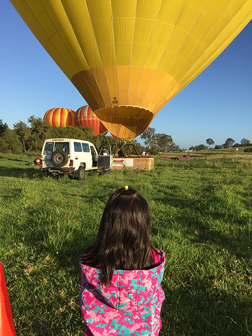 费用: 1088人民币一位30分钟,大人和儿童一样价格。我是双12在携程订的,加1元每人送梦幻世界Dreamworld门票一张,原价要每人300多,超值的。 清晨3:45出发,真的很早!司机兼导游也是一个酒店一个的接客人,一车大概12人左右,中国家庭有两家,就我们一家带孩子了。早上5:30到达热气球起飞点,这时太阳已经升起了。 儿童4岁以上可以乘坐,但是我闺女不到1.2米还是要抱着才能看到。每个球可以上24名乘客,每个篮子站6人,还是有点挤的。坐热气球不用穿太多衣服,因为点火时会很热,头皮都发烫!气球升天后其实非常安静,可以静静的以上地面和选出的景色。我还是有点腿抖的。手机相机都可以随身携带,但是不能带包上去。 30分钟的飞行还是可以的,也有60分钟的,个人觉得30分钟就够了。下来后大家要帮忙一起收气球,草地上就是苍蝇多啊,还经常往脸上扑!真的很原生态!