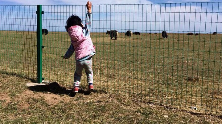 接着喊停两次车,执着的送虚无的糖给羊和牦牛吃,扔完大声的告诉它们:这是苹果味道的