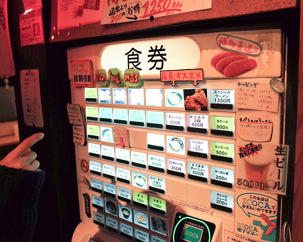 我们选择了朋友推荐的博多拉面,在自动点单机上选择,排名前两位的拉面,结果我的是碗黑拉面,不过味...