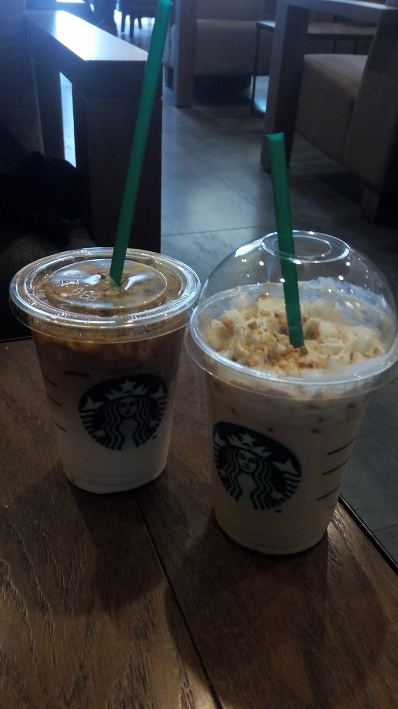 在王府井apm的商场的地下一层我记得,一个半开放式的星巴克店面,这里人不是很多,作为还是很多的,总体环境还是不错的,装修一如既往的不错温馨。价格自然是统一的,我一般都买大杯的33—35元,星冰乐是我最爱的,每次都点几乎不点别的……也是蛮执着的!!!