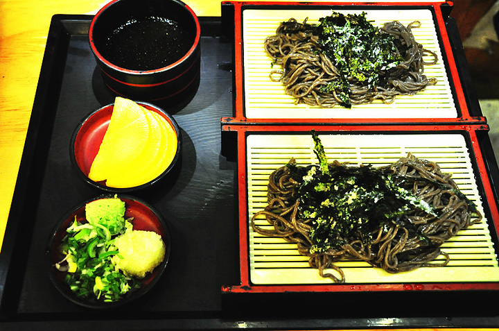 有点自助,自己去点菜,自己去取 荞麦冷面(6000won)+ 芝士炸猪排(7000won),普通的炸猪排便宜点 这个面我们都不知道怎么吃= =! 店员给我们示范了一下,要把作料都丢进那碗黑黑的酱里,然后把面也都丢进去,然后再捞起来吃。。。觉得味道一般般,面很凉很凉。