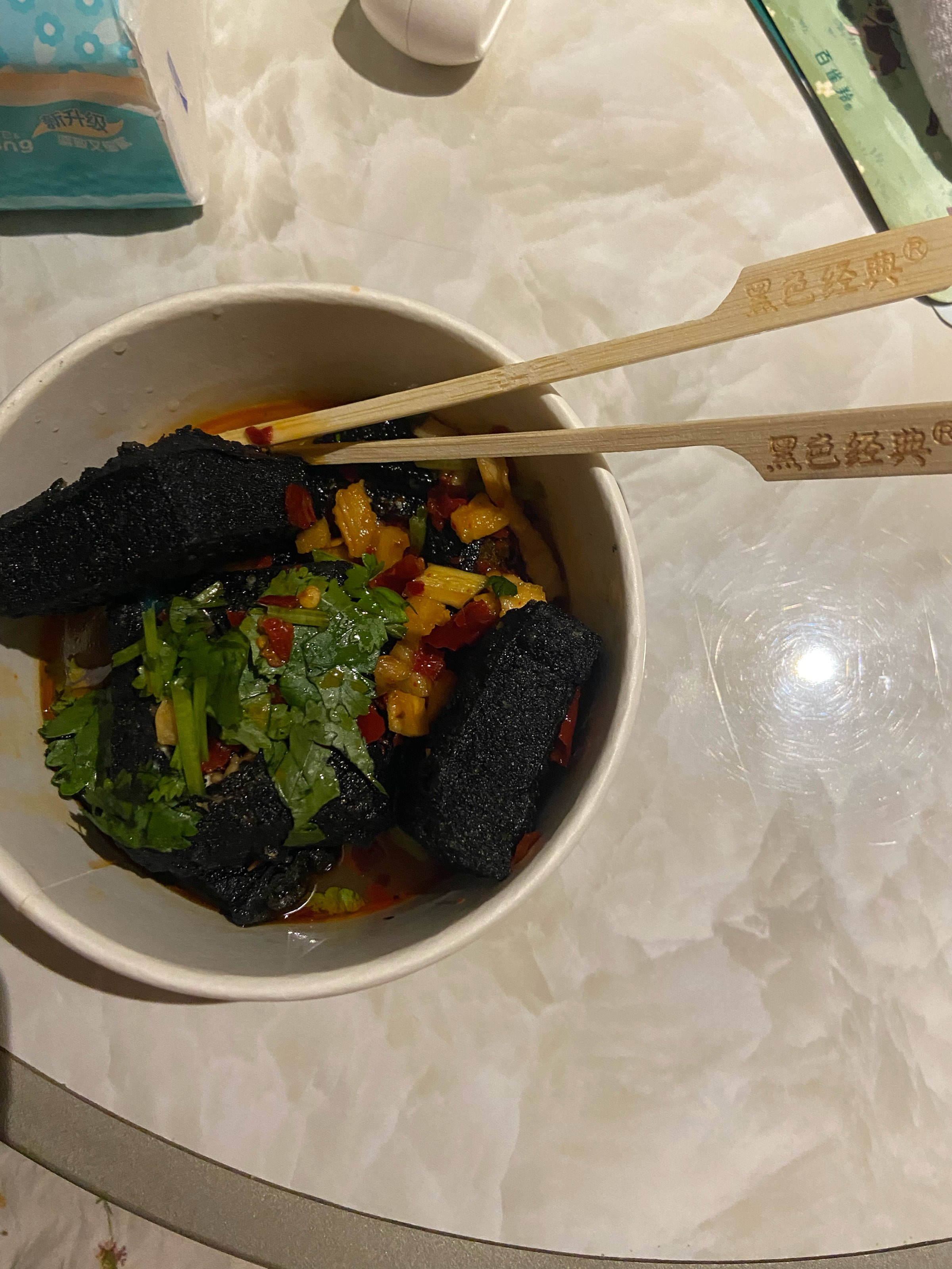 半夜买回来的黑色经典臭豆腐,好吃