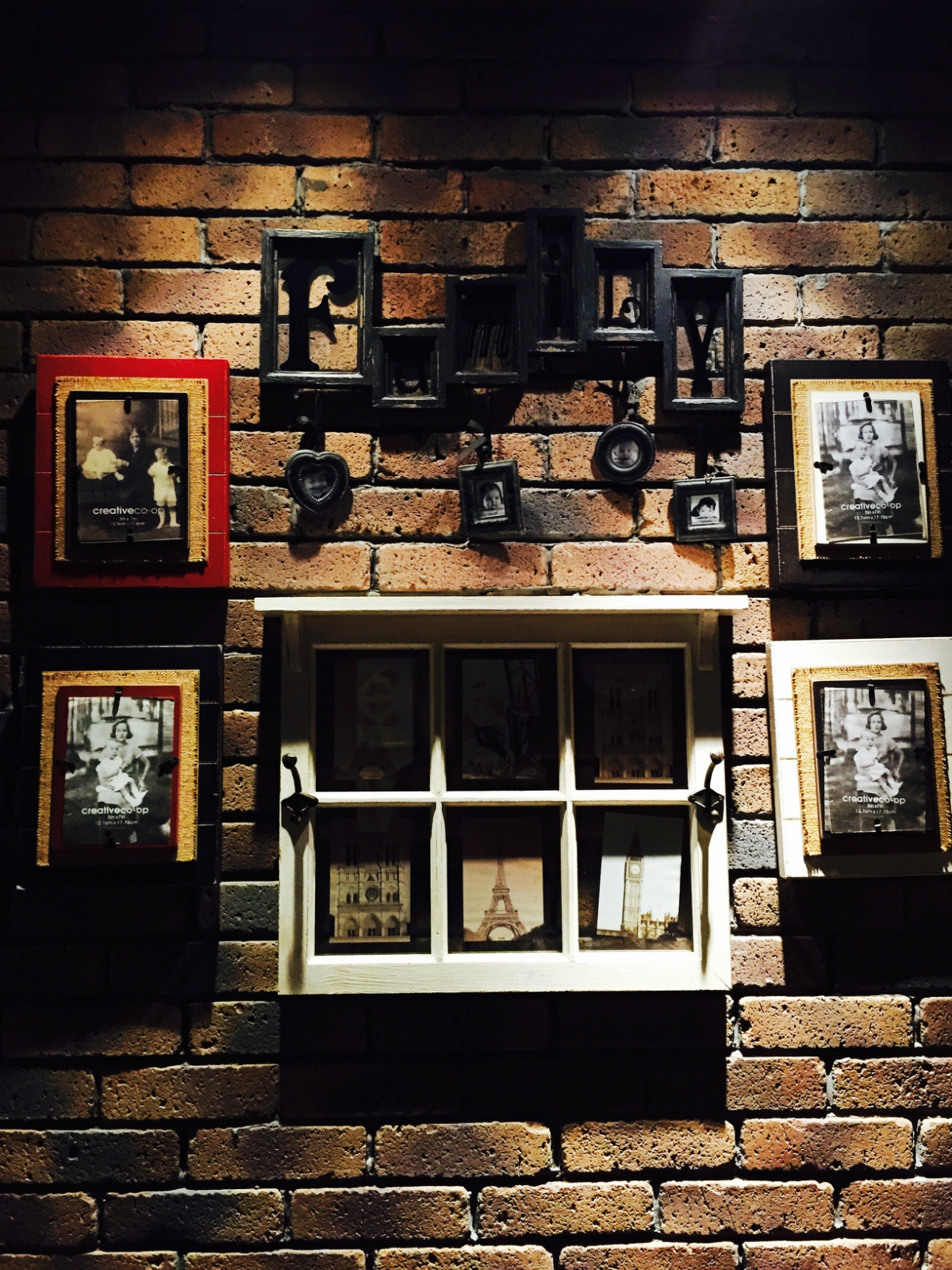 走廊上的小摆设,有老照片,颜色基调比较深沉。