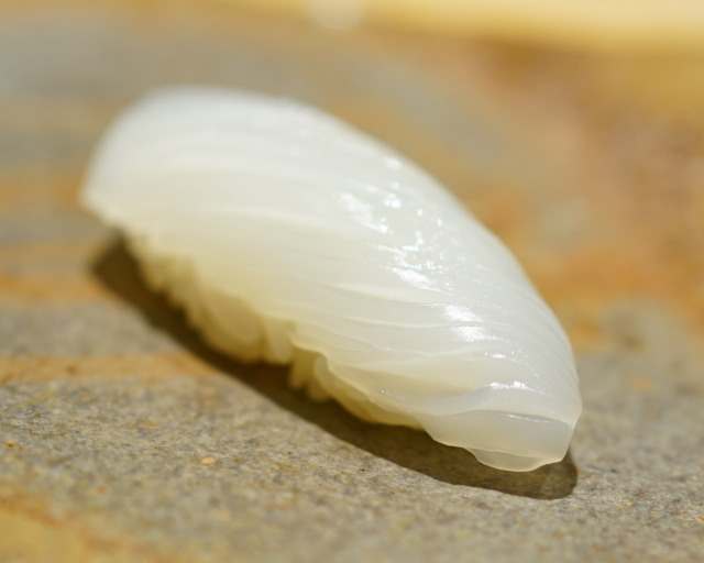 这个是乌贼寿司,我个人不喜欢的一个,因为口感特别柔韧,总有一种嚼不断,咽不下去的感觉