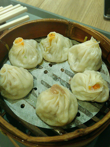 在正大广场的美食广场吃的,吃过小笼包,但是没吃过上海的小笼包,里面有汤,我一开始还想着,这汤包咋皮这么厚呢?肉馅和的不好,肥肉太多,才吃一口就腻了。。