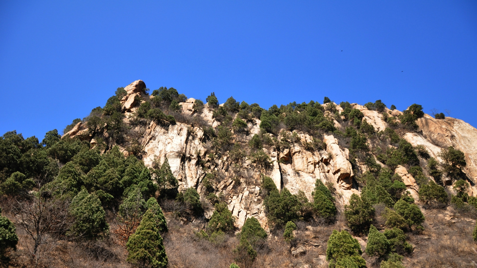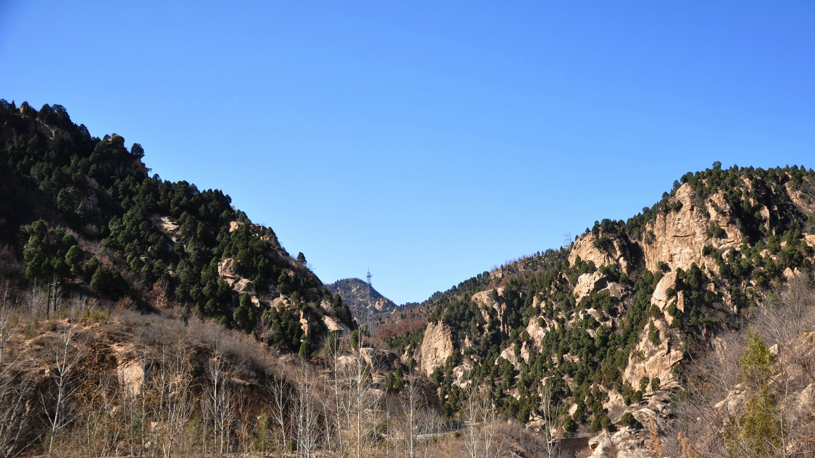 虽然天冷山景依然很秃,不过这晴朗的蓝天真是喜人。云梦仙境的门票不贵,印象里大概20块左右吧,也没什么游客。