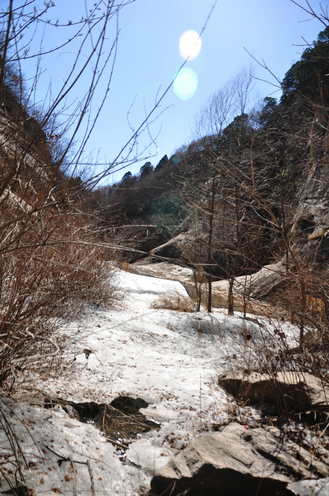 云梦仙境的门票不贵,印象里大概20块左右吧,也没什么游客。 寒冬还没有完全结束,冰雪的痕迹依旧明显
