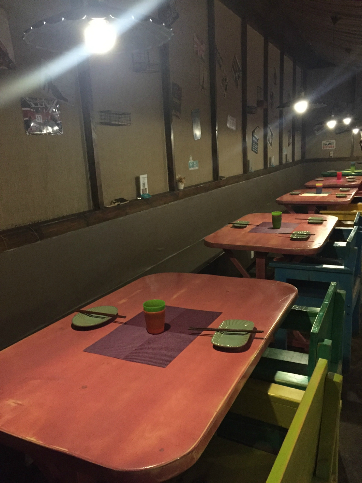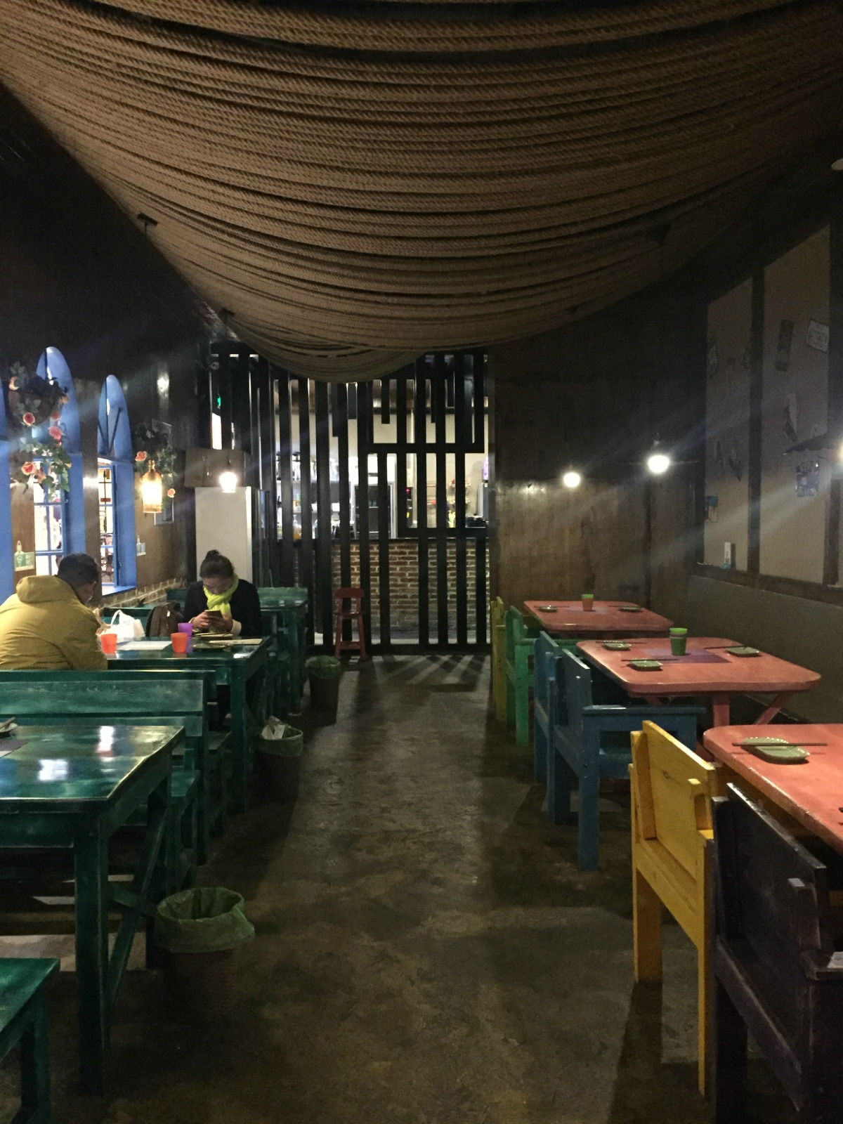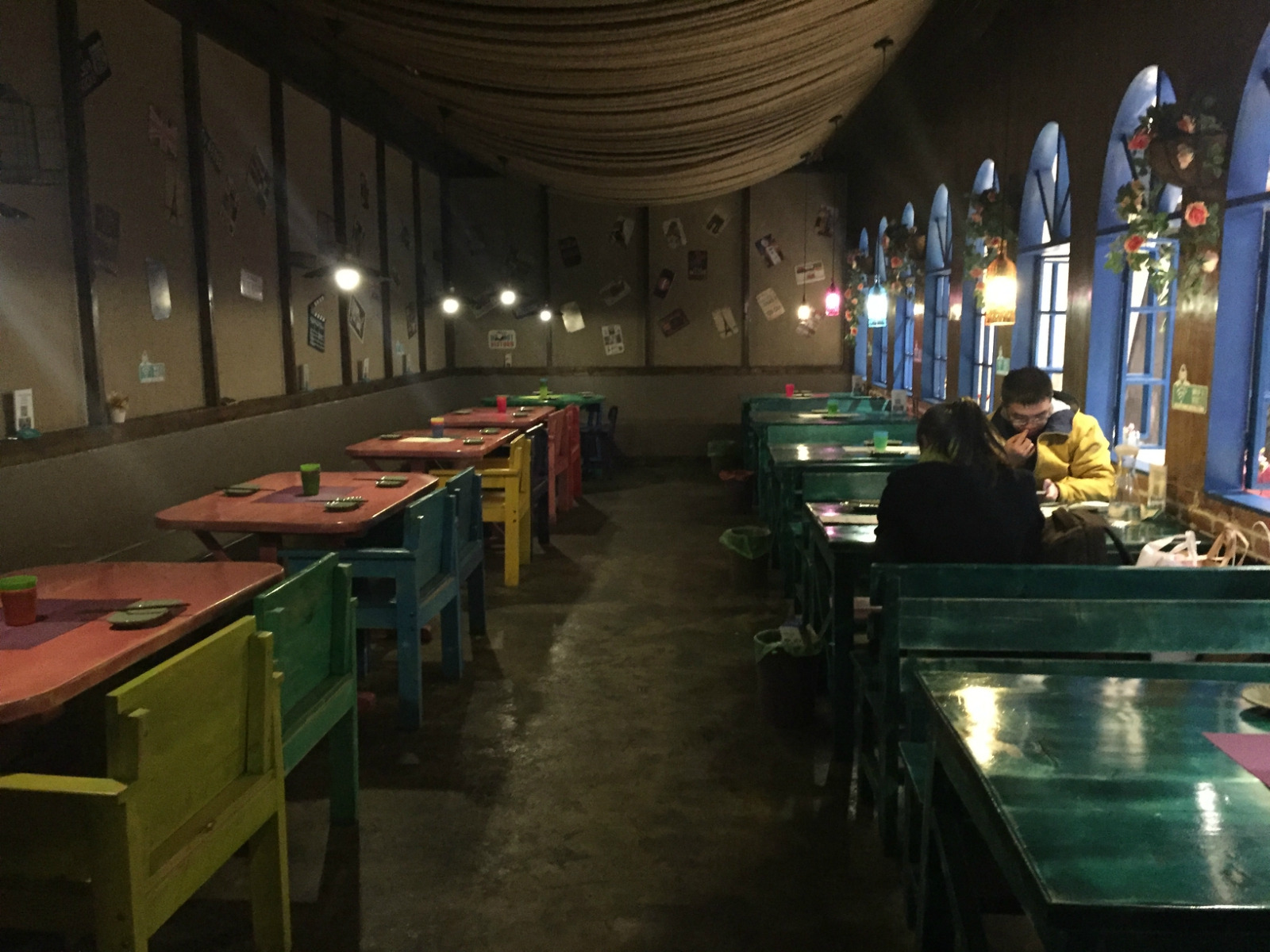 主题餐厅,还是很个性的,简单的墙面上零散的贴着各种贴画,每扇窗户上都会有鲜艳的仿真花,只是餐厅不是特别的暖和,不然真有春暖花开的感觉了,嘿嘿。
