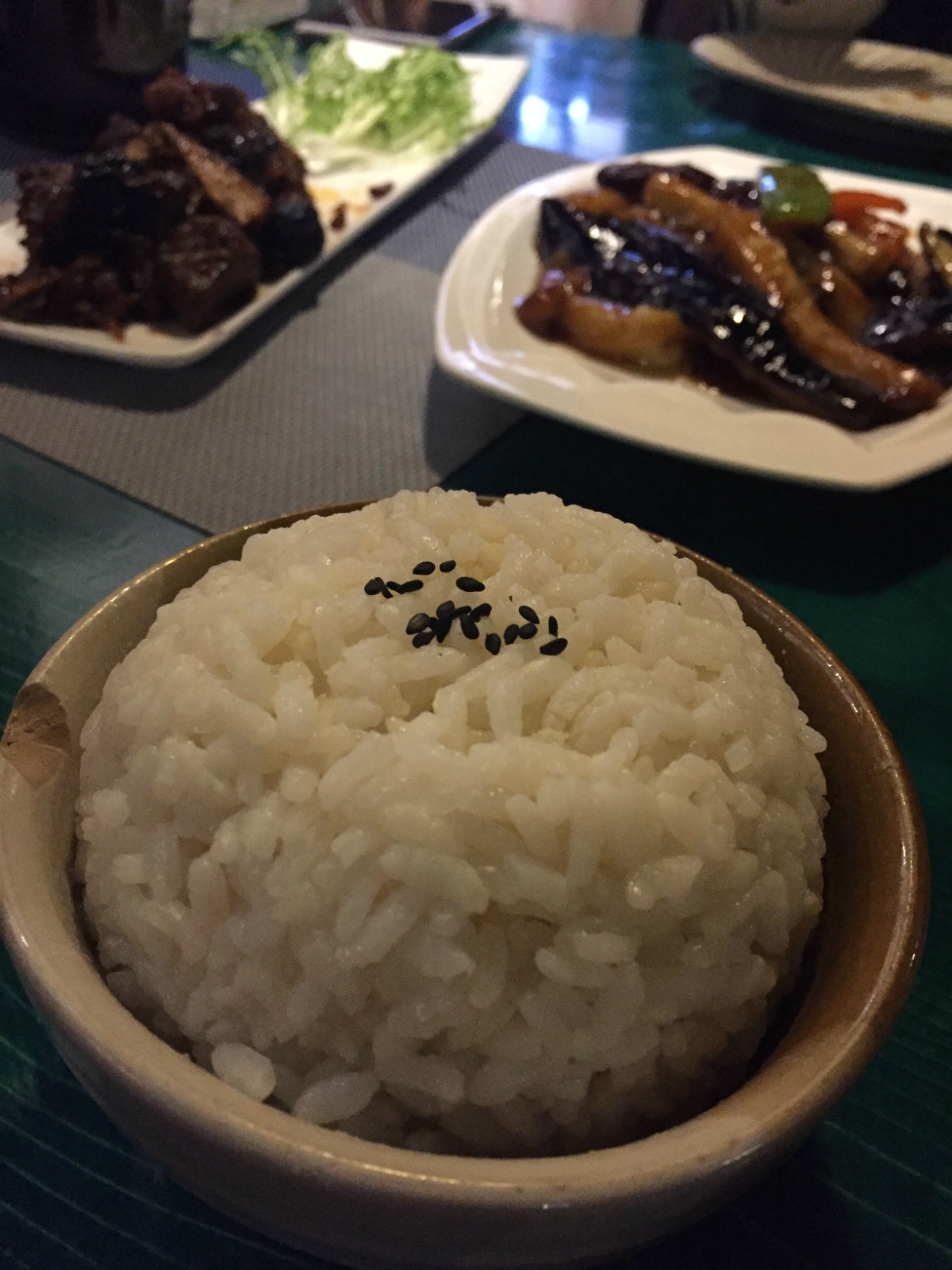 米饭的量也不少是很多,男同志怎么地也得两碗,这么一小碗挺贵的,3元呢。