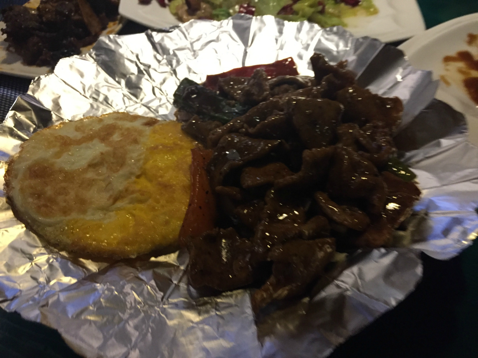 菜名:黑不牛秋(黑椒牛柳),额,这个菜味道还不错,牛肉挺嫩的,煎蛋也很正好,就是缺乏点绿色蔬菜的点缀。