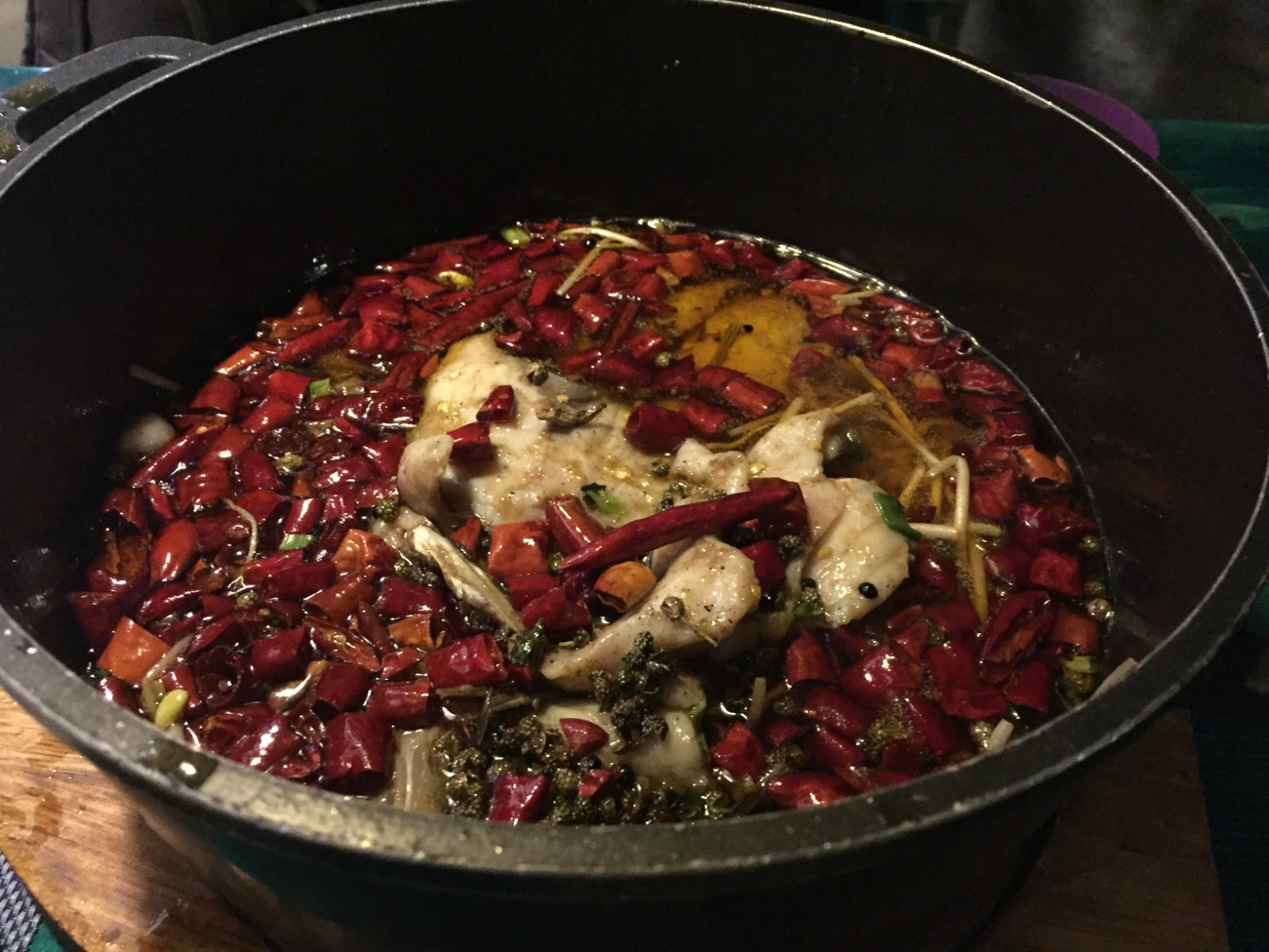 菜名:排山倒海鱼。额,大气的菜名,其实就是水煮鱼片。盆儿挺大的,就是鱼肉不太多,因为是最后一道菜上的,前面的已经垫吧很多了,感觉肉量还好,其实不怎么多的。