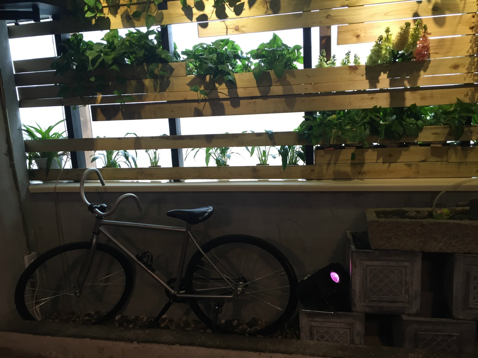 餐厅一角,一辆复古自行车(PS:仔细看哦,肯定不实用,没有刹车和铃铛哦),把整个背景墙衬托的更加文艺范儿了,哈哈。