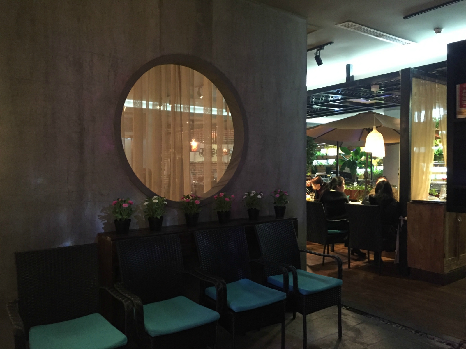 餐厅一角,到处是大小盆栽的绿植,再一次突出餐厅的主题——花园。