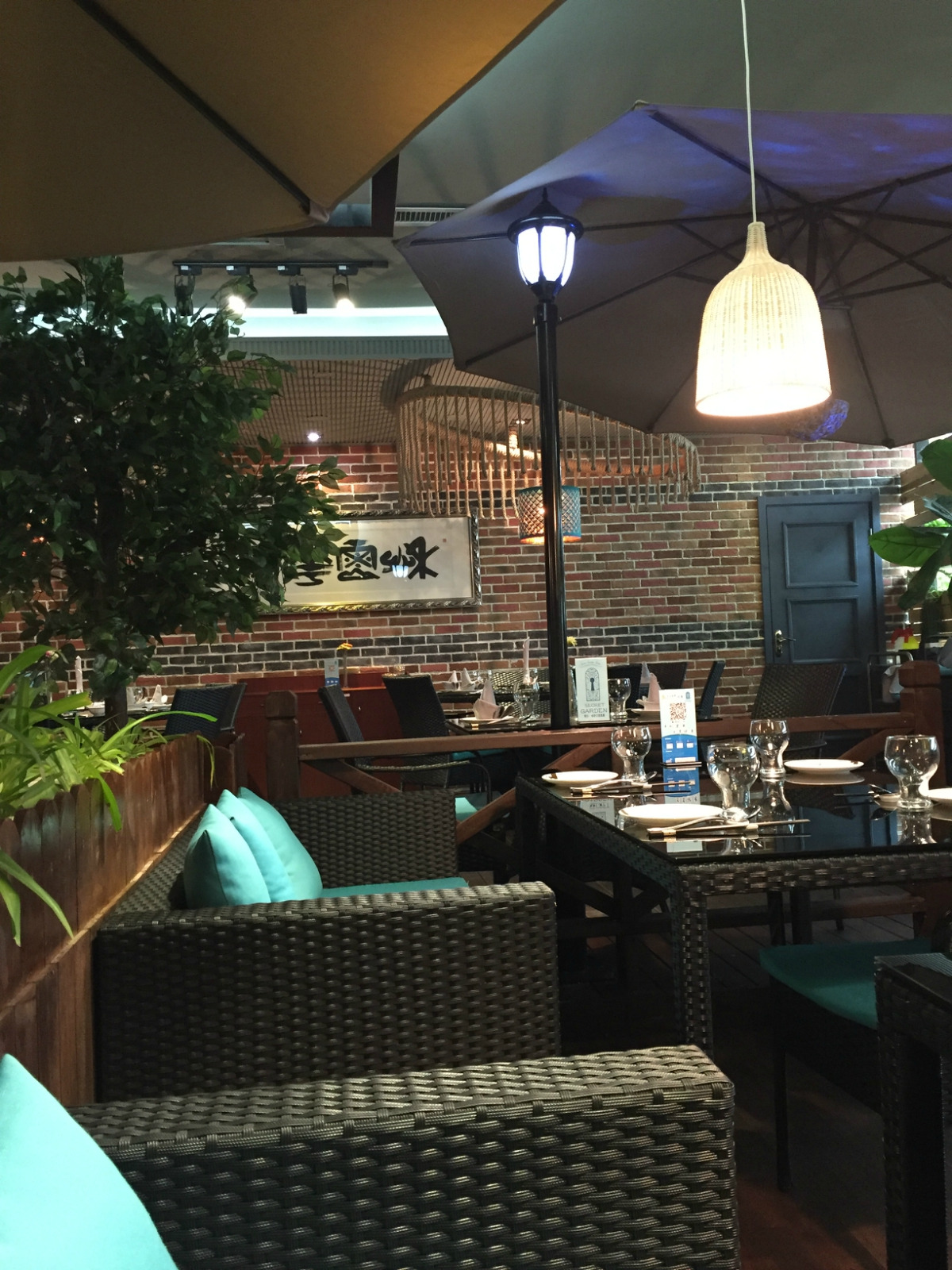 餐厅一角。藤椅很舒服,主要是靠枕起了很大的作用,诺达的遮阳伞发挥着个性的作用,墙上的字画,也无形中凸显这文艺元素。
